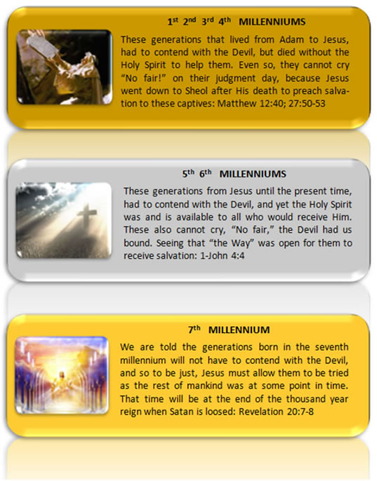 At this point God's justice pertaining to mans' salvation will have been satisfied for all. Thus, even though there were many different dispensations, all were afforded a pathway to salvation and deliverance. God will have made "a Way" for all to be equally judged according to their situation. Additionally, one must consider all the souls who died as babies, the very young, and the mentally impaired; God knows how to factor in righteous judgment. Therefore, by taking a brief look at the big picture, we are able to see how justice was served to all these generations. The key factor for determining their judgment was and always will be accountability.