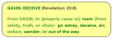 "And when the thousand years are expired, Satan shall be loosed out of his prison, And shall GO OUT [of his prison] to DECEIVE the nations which are in the four quarters [meaning the whole] of the earth, Gog and Magog [meaning especially those of that linage], to gather them together to battle: the number of whom is as the sand of the sea." Revelation 20:7-8